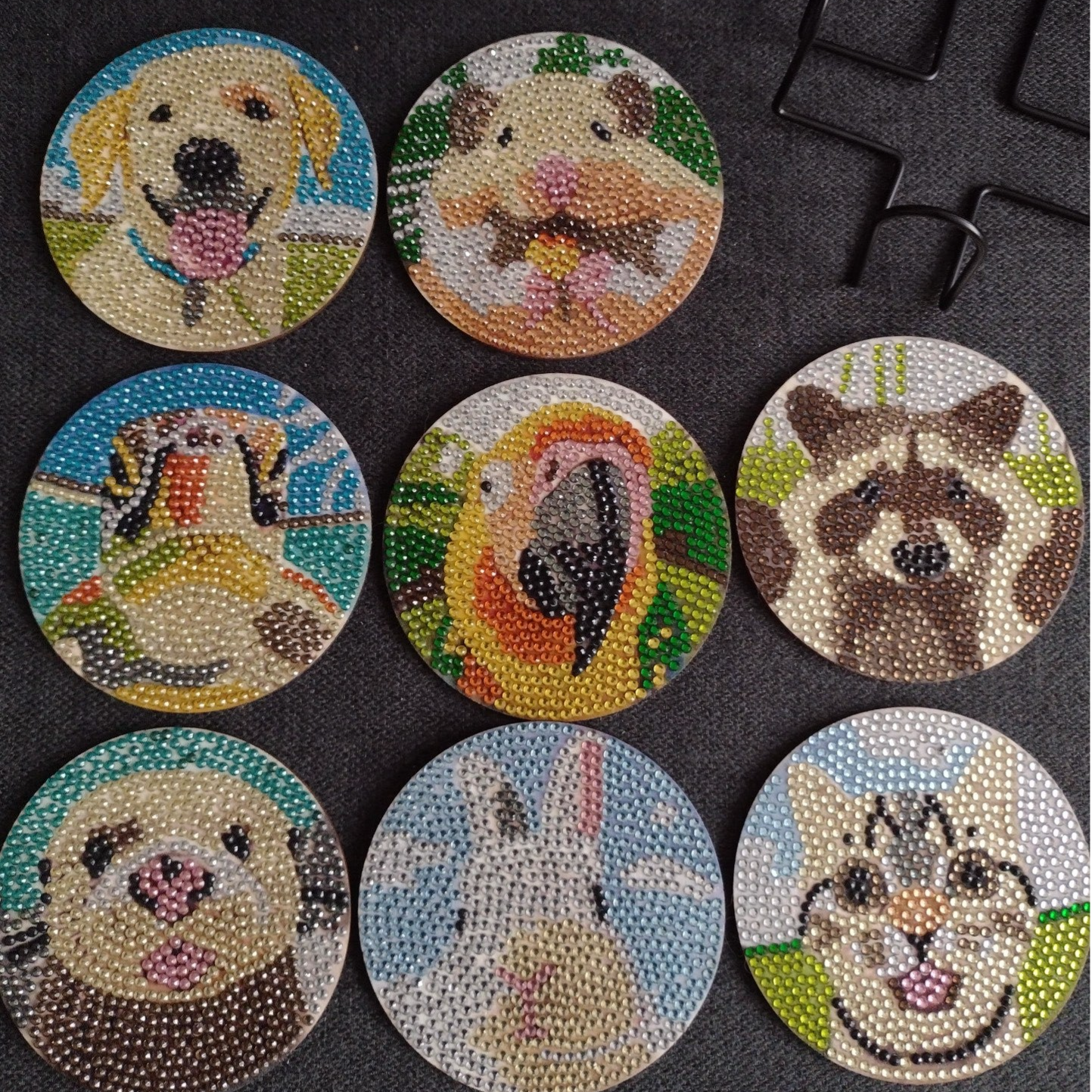 Prachtige set met handgemaakte onderzetters. 8 stuks.